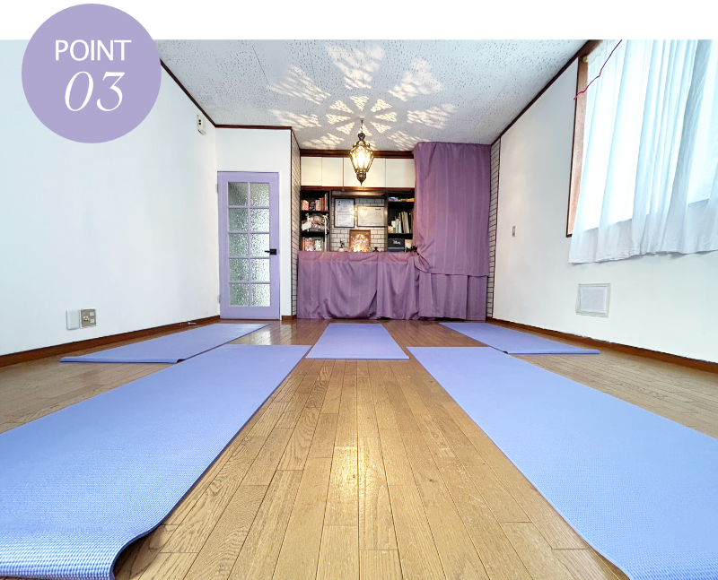 日々の忙しさやストレスから少し離れ、心と身体を静かに整える新座の隠れ家ヨガサロンとして、皆さまが自分自身に還る時間を過ごせるように願いを込めています。