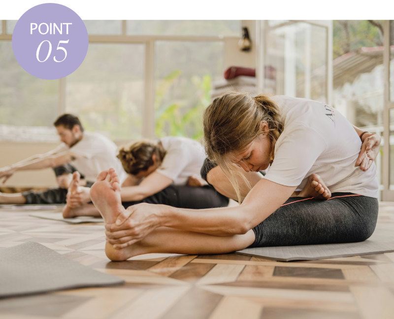 呼吸とともにポーズを行うことで、内側から温まり、代謝アップや心身のリフレッシュにもつながります。